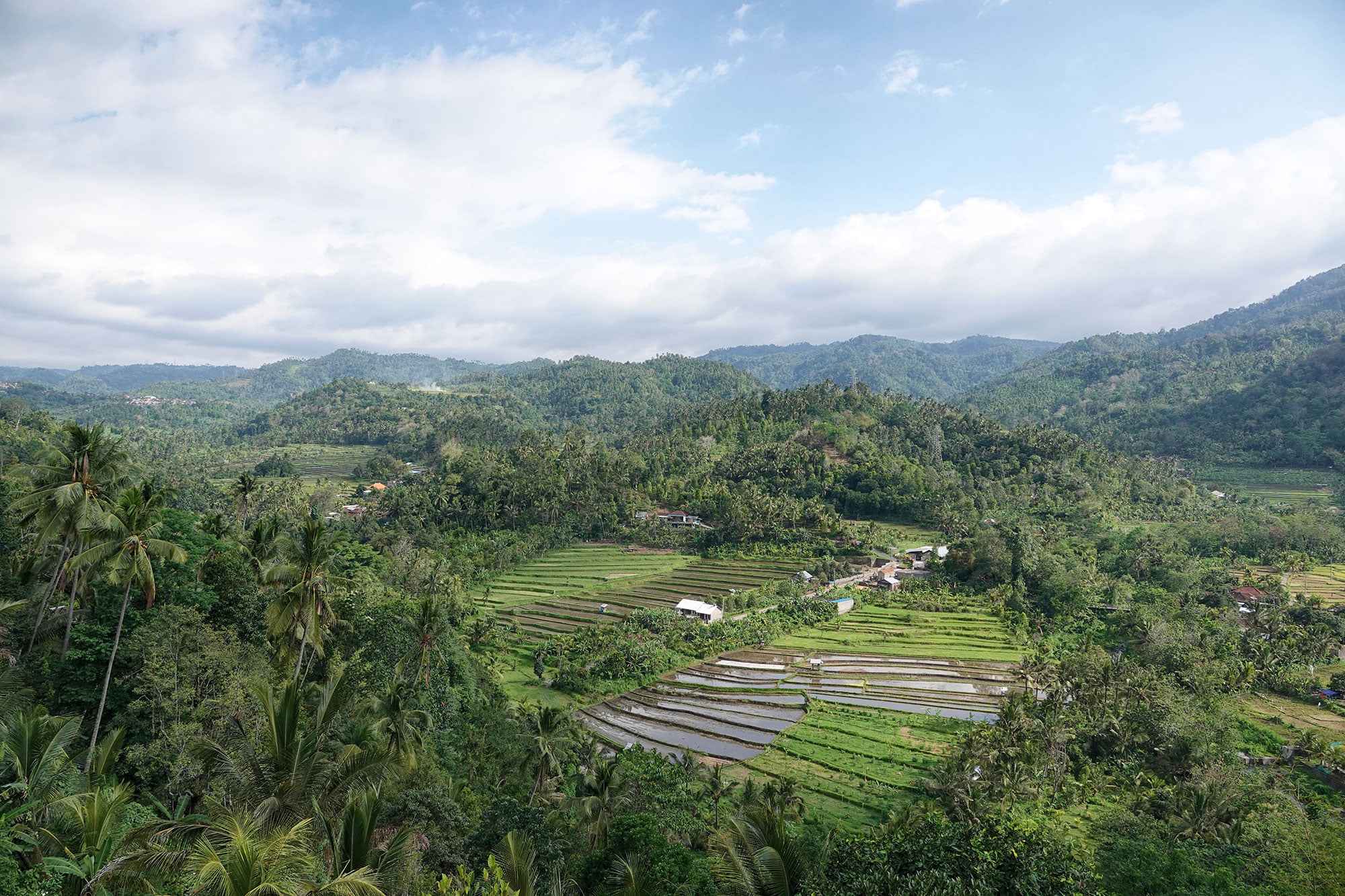The beautiful Balinese landscape filled with nature and healthy rice fields.