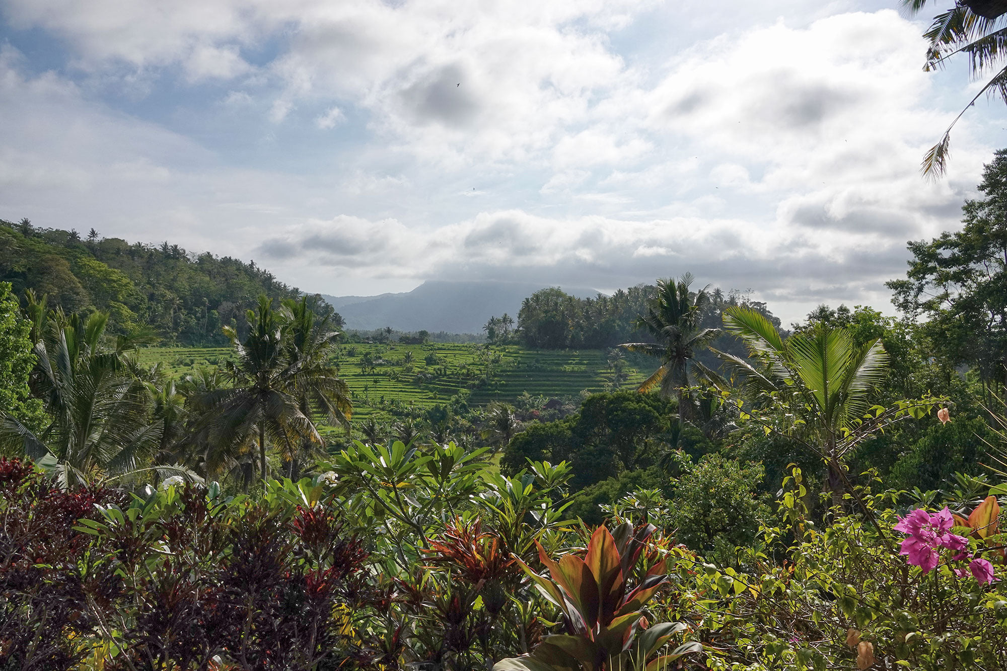 The light of the moon fades as the sun rises steadily over the seas in East Bali.
