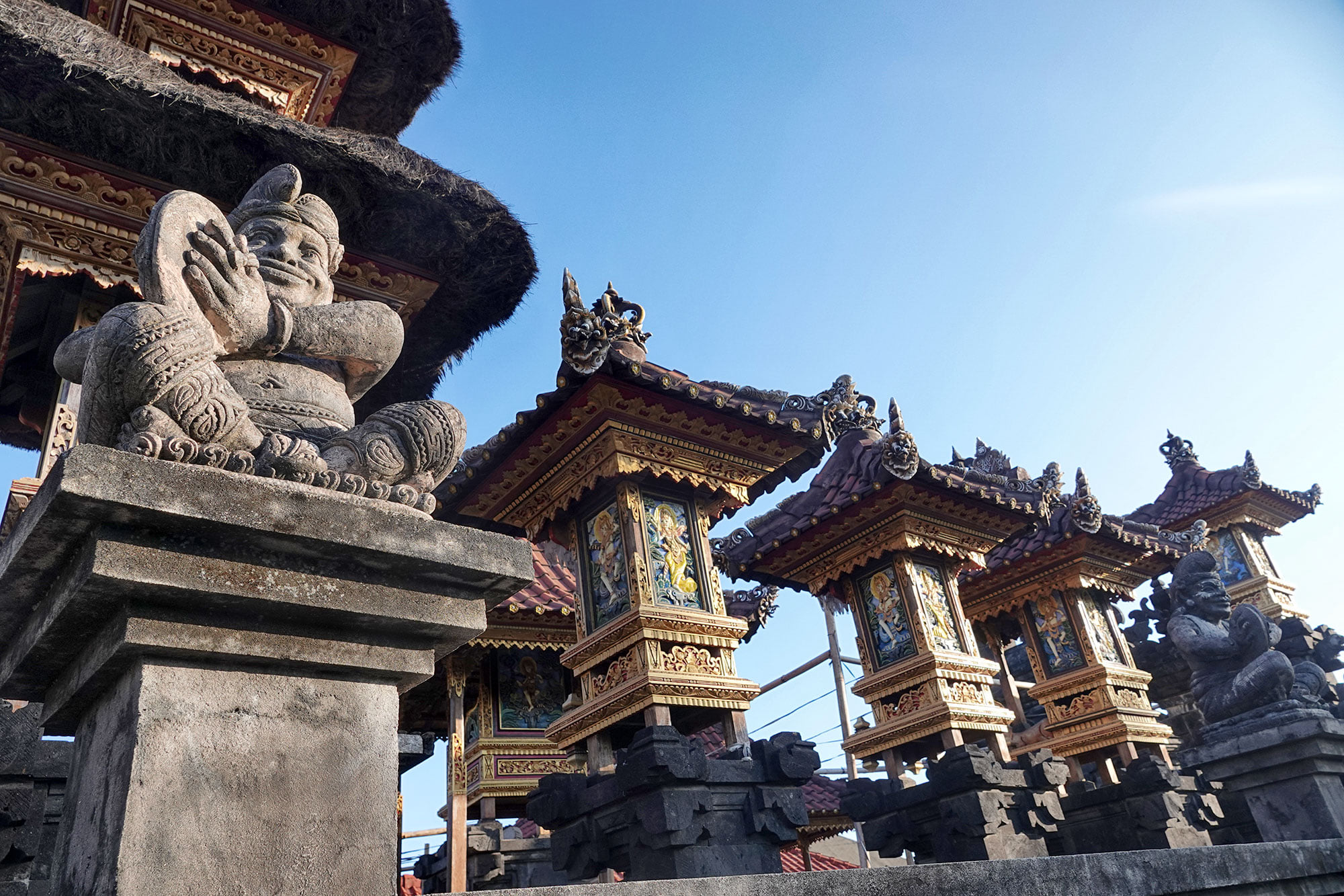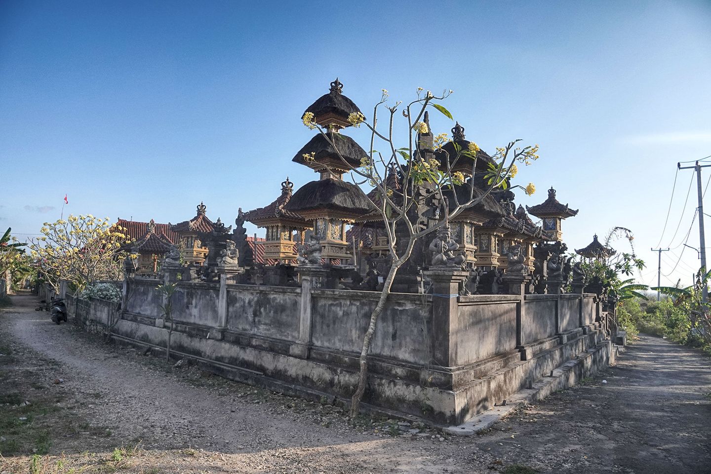 A Balinese temple situated on the corner of a street on Nusa Lembongan.