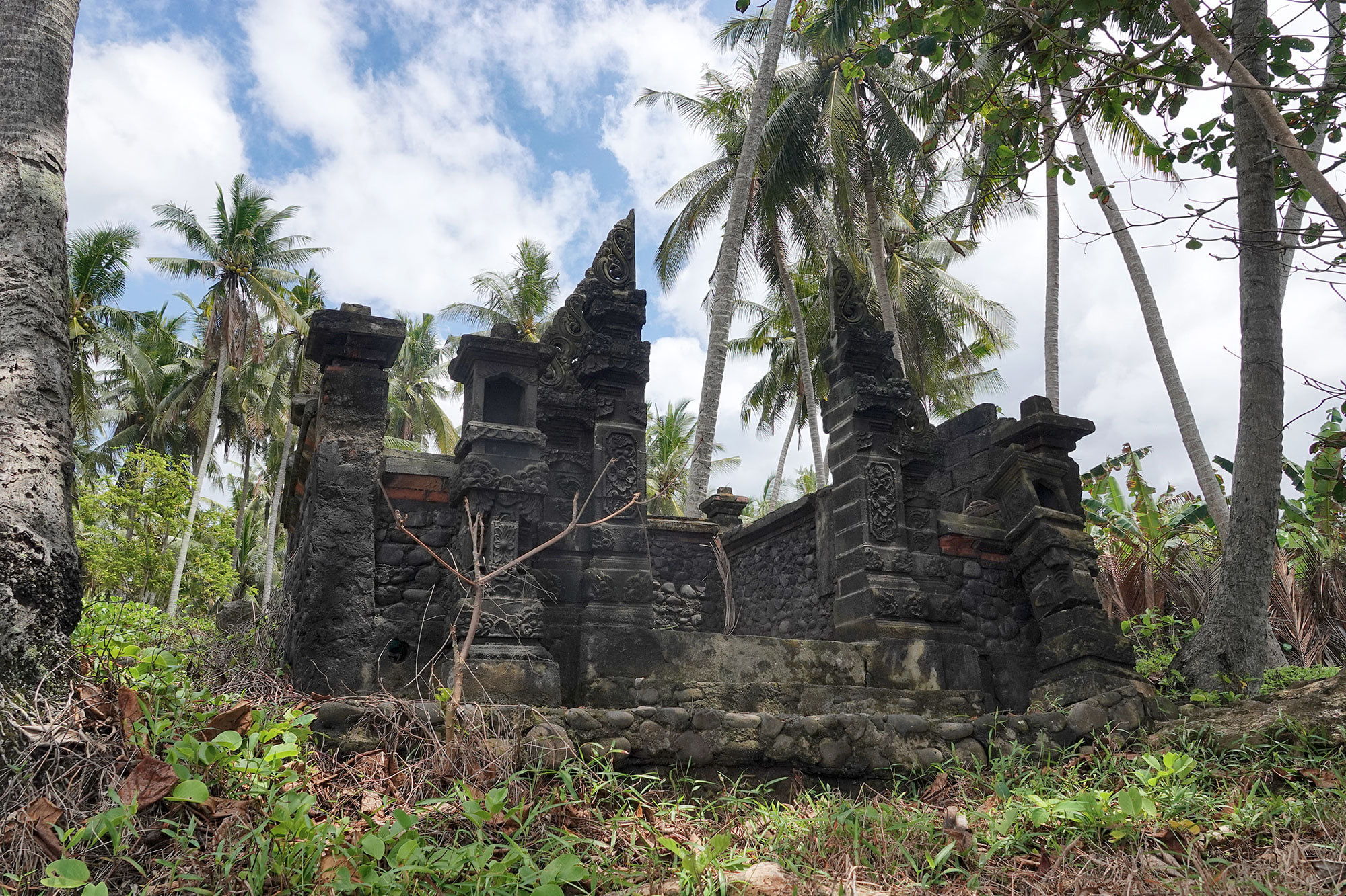 A small shrine in the Karangasem Regency of Bali which has been overgrown with plants and trees.