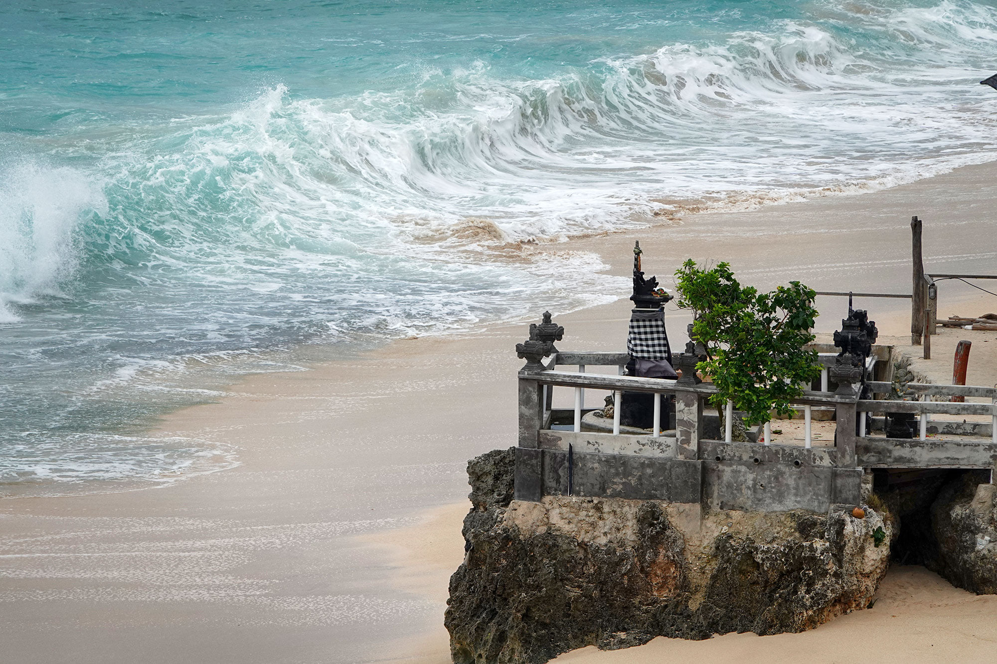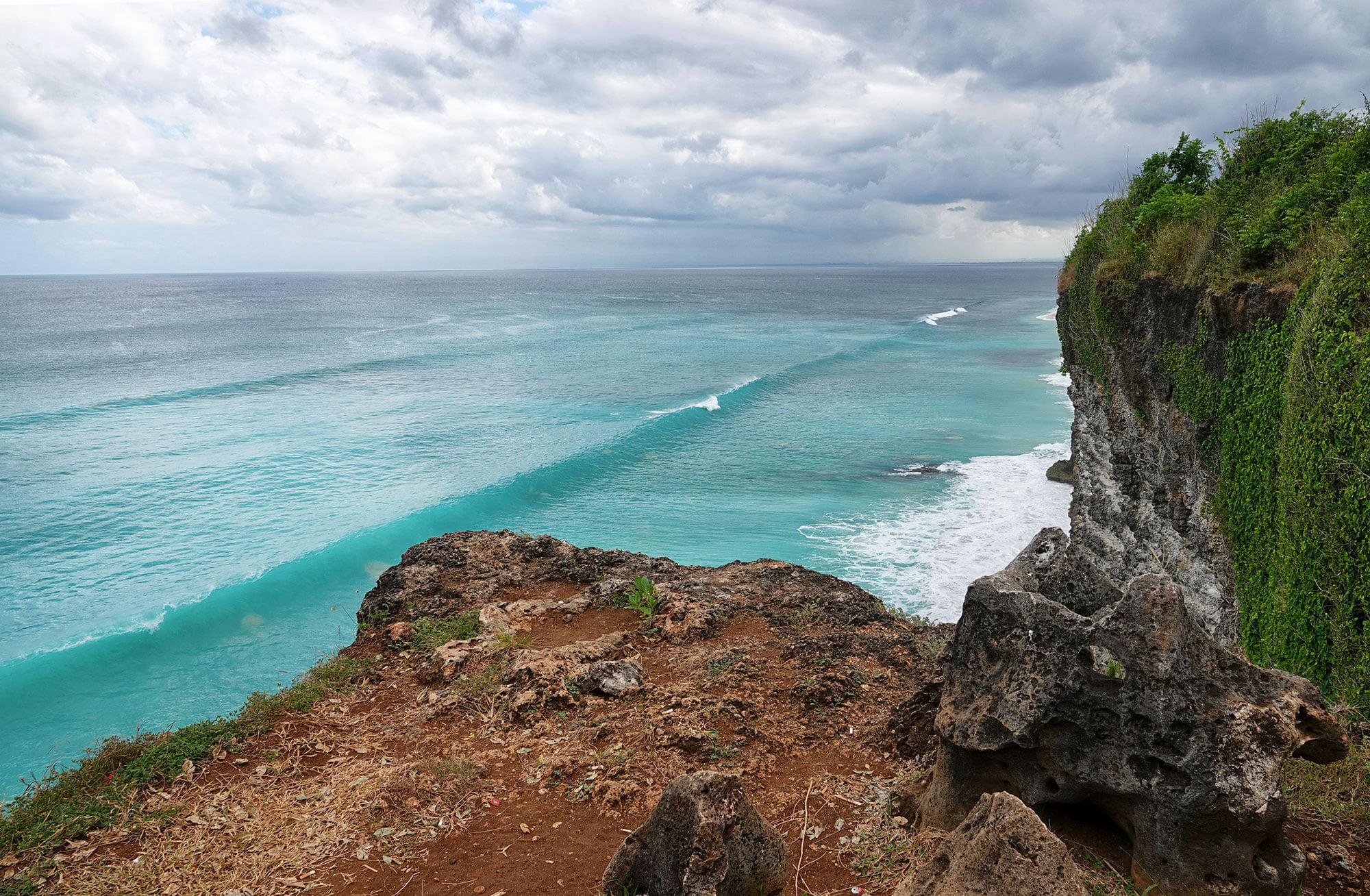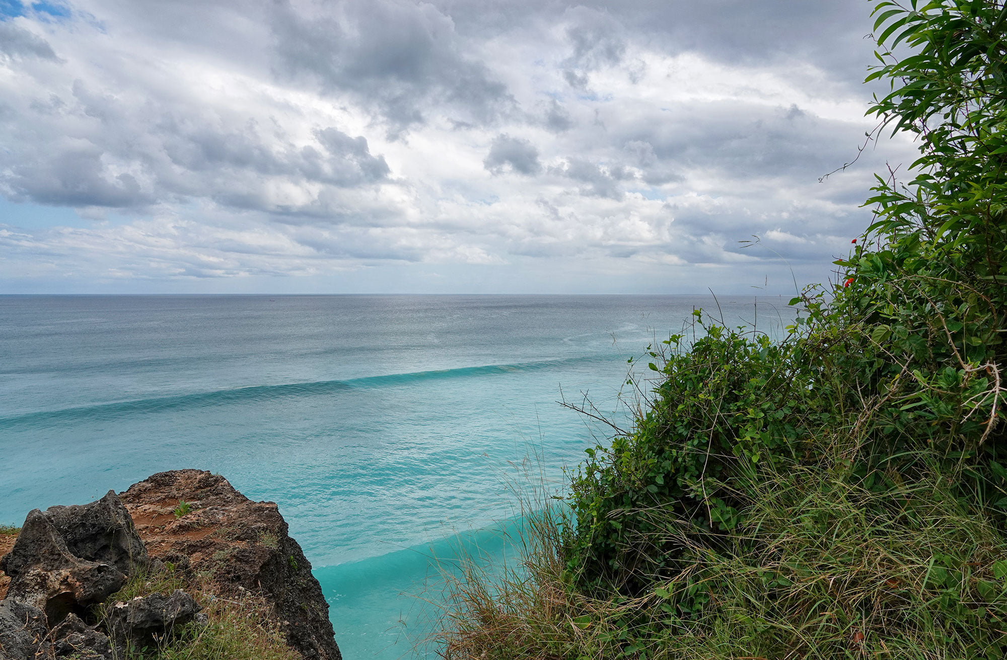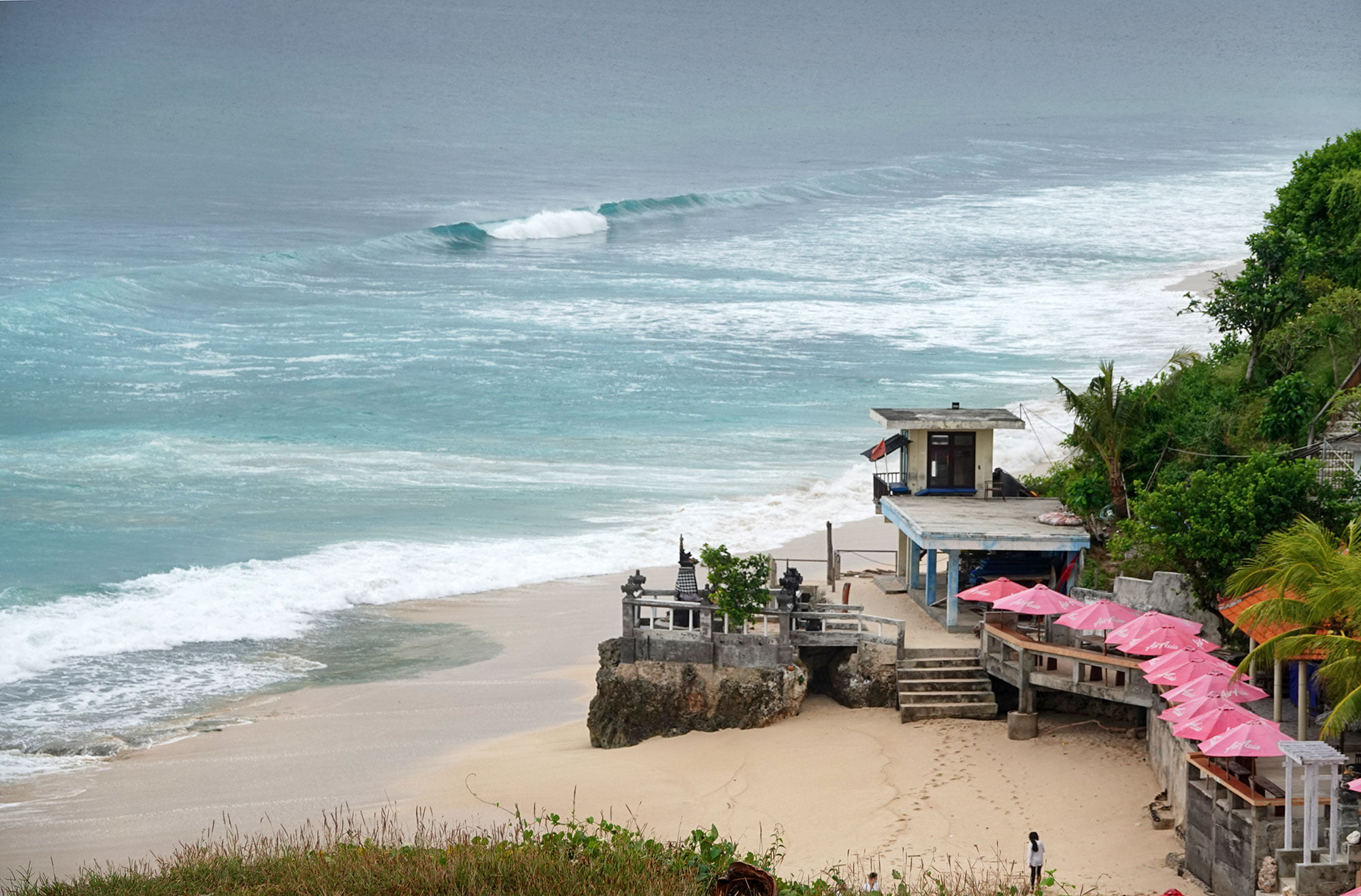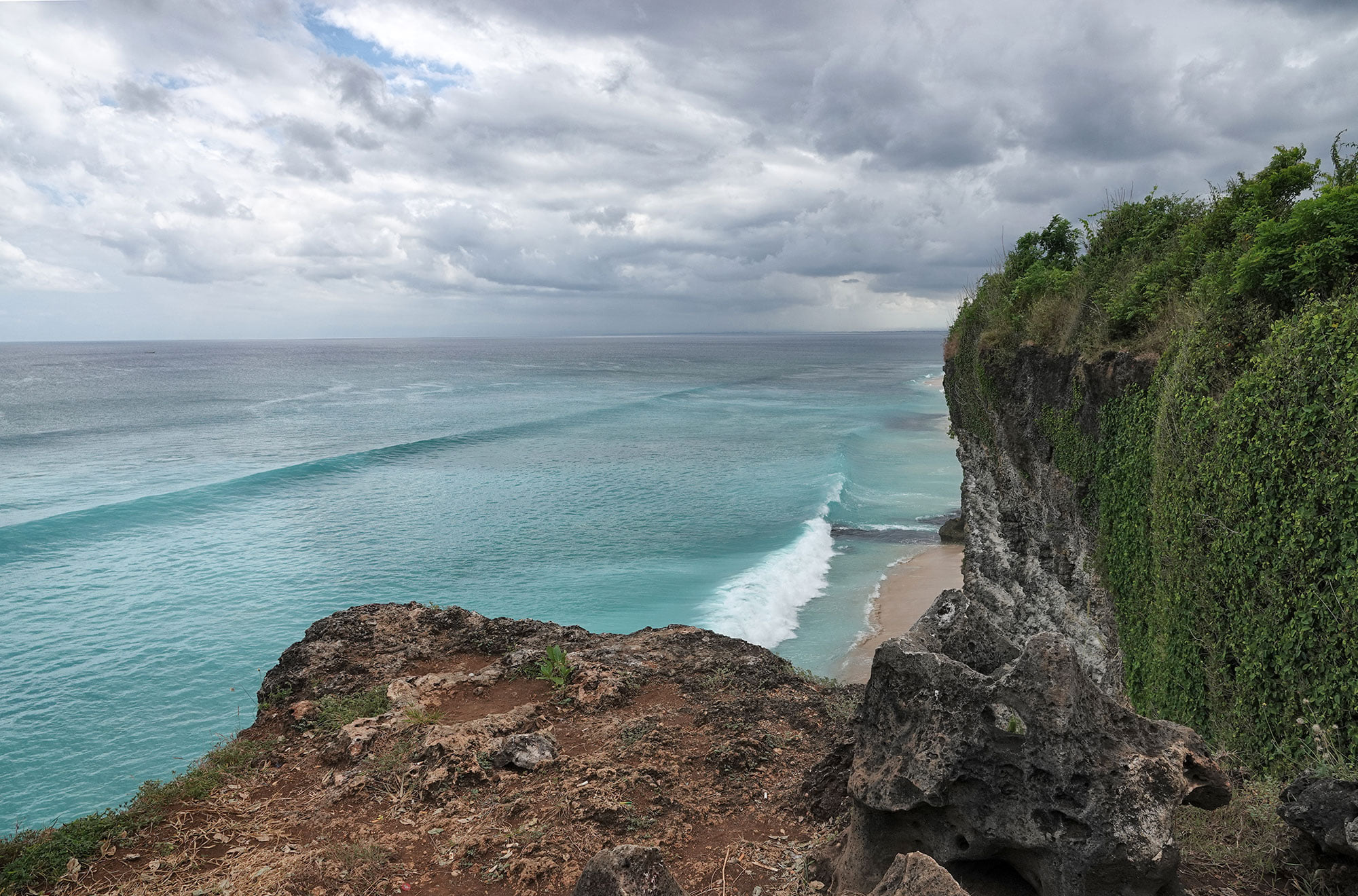 Cliffside views of waves, beaches and sunsets from the Pecatu Village area, South Bali.