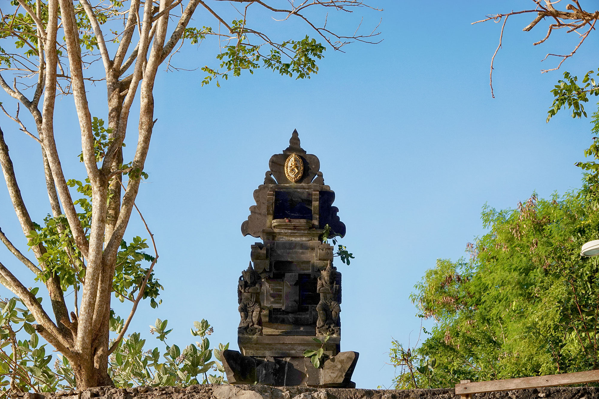 Afternoon shots of trees and a small Balinese temple on Padang Padang Beach, Pecatu Village, South Bali.