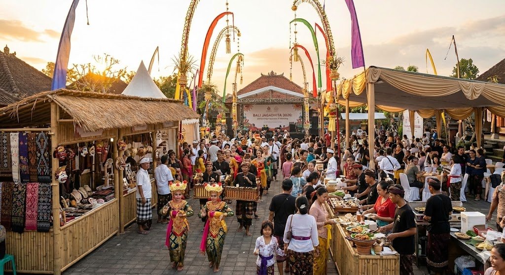 Bali Jagadhita 2026 merupakan festival budaya dan kreatif yang merayakan Jagadhita—filosofi Bali tentang kebahagiaan, harmoni, dan kesejahteraan. Festival ini menghadirkan perpaduan seni tradisional dan kontemporer, pameran kerajinan kreatif, sajian kuliner, serta parade budaya yang meriah.