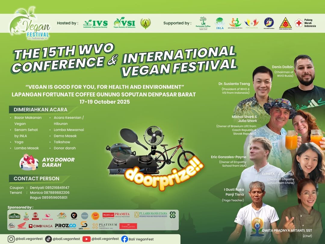Acara bergengsi ini akan berlangsung pada 17–19 Oktober di Taman Werdhi Budaya Art Centre serta Maha Vihara & Pusdiklat Buddha Maitreya, Denpasar.Dikenal akan keindahan alam, spiritualitas, dan gaya hidup ramah lingkungan, Bali menjadi latar sempurna bagi salah satu pertemuan vegan terbesar di dunia. Dengan semangat “Vegan is good for you, for health and environment,” konferensi ini mengajak masyarakat global untuk bersama-sama menciptakan masa depan yang lebih sehat dan berkelanjutan
