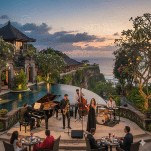 Nikmati suasana di taman yang elegan ditemani lantunan pertunjukan langsung musik jazz  yang lembut dan santap olahan bakaran makanan — menciptakan malam sempurna di bawah langit berbintang di pulau Bali. Pengalaman bersantap istimewa ini menghadirkan perpaduan cita rasa yang memikat, suasana yang menenangkan, dan kehangatan khas pulau Bali.