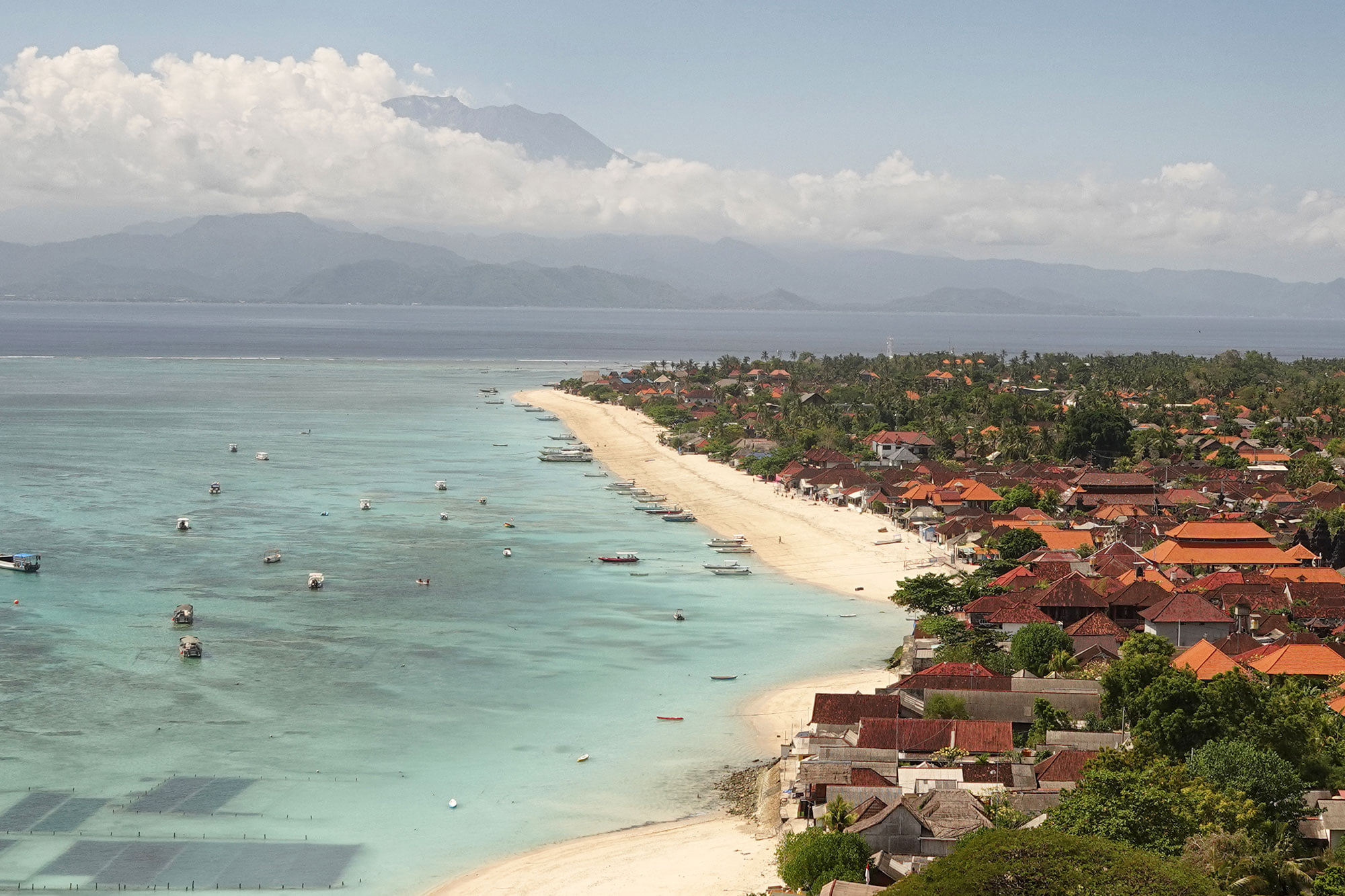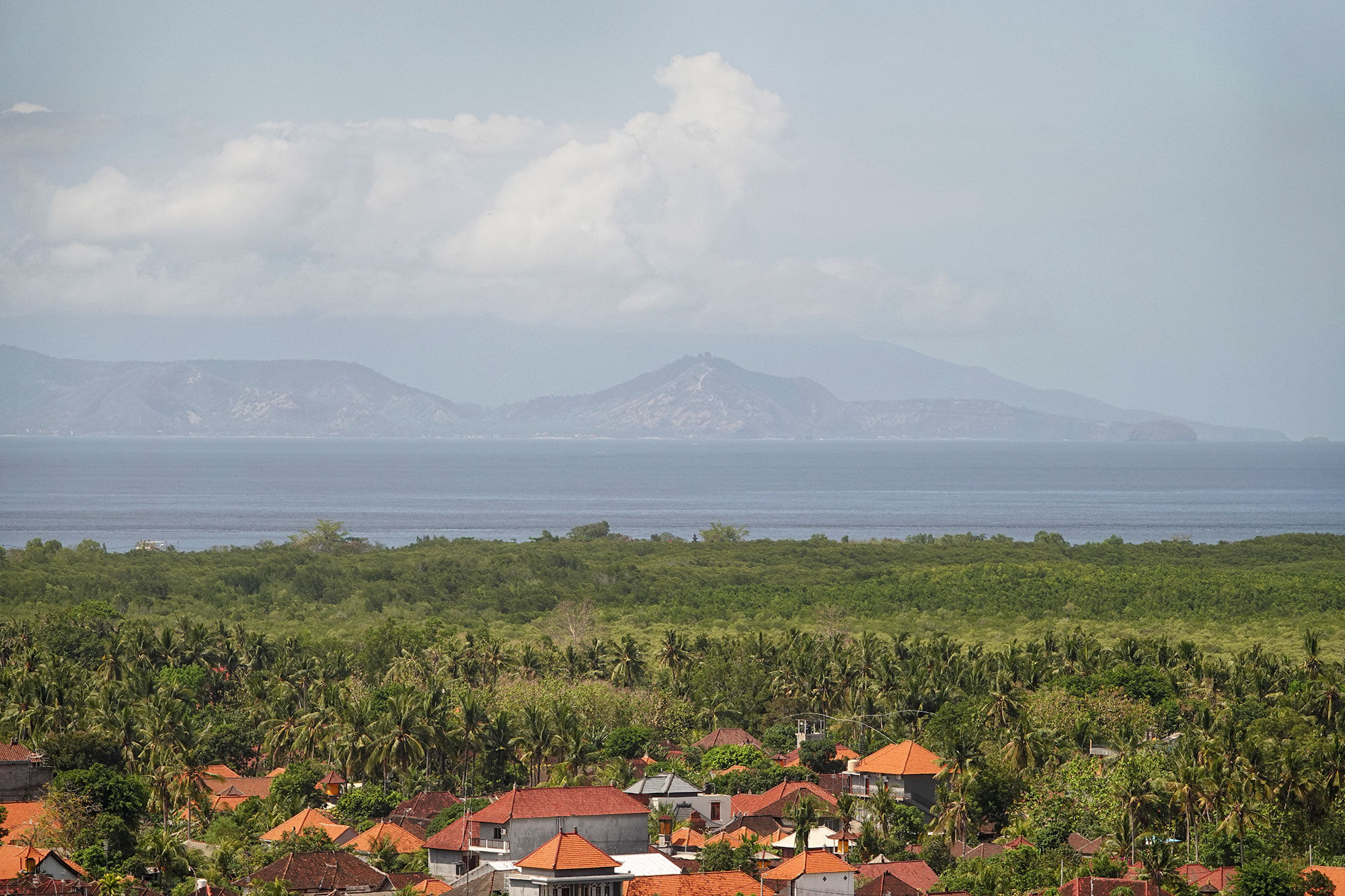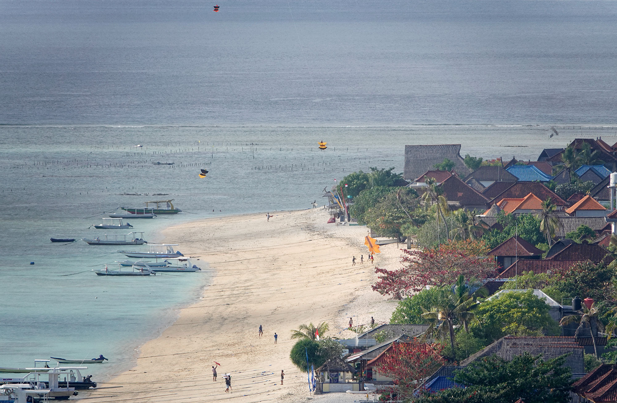 Sunsets and beautiful blue views of Jungutbatu Village on the island of Lembongan, Bali.