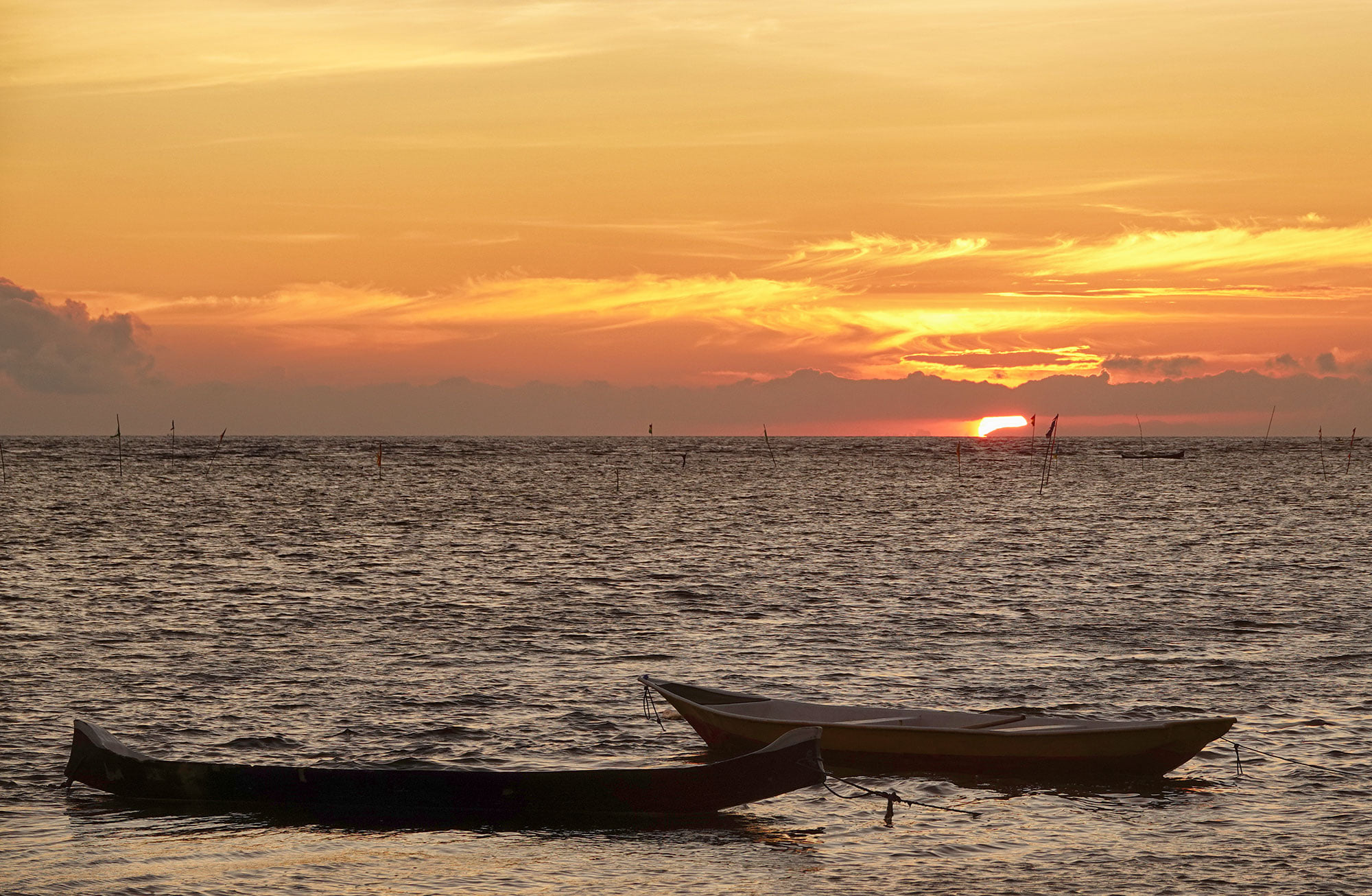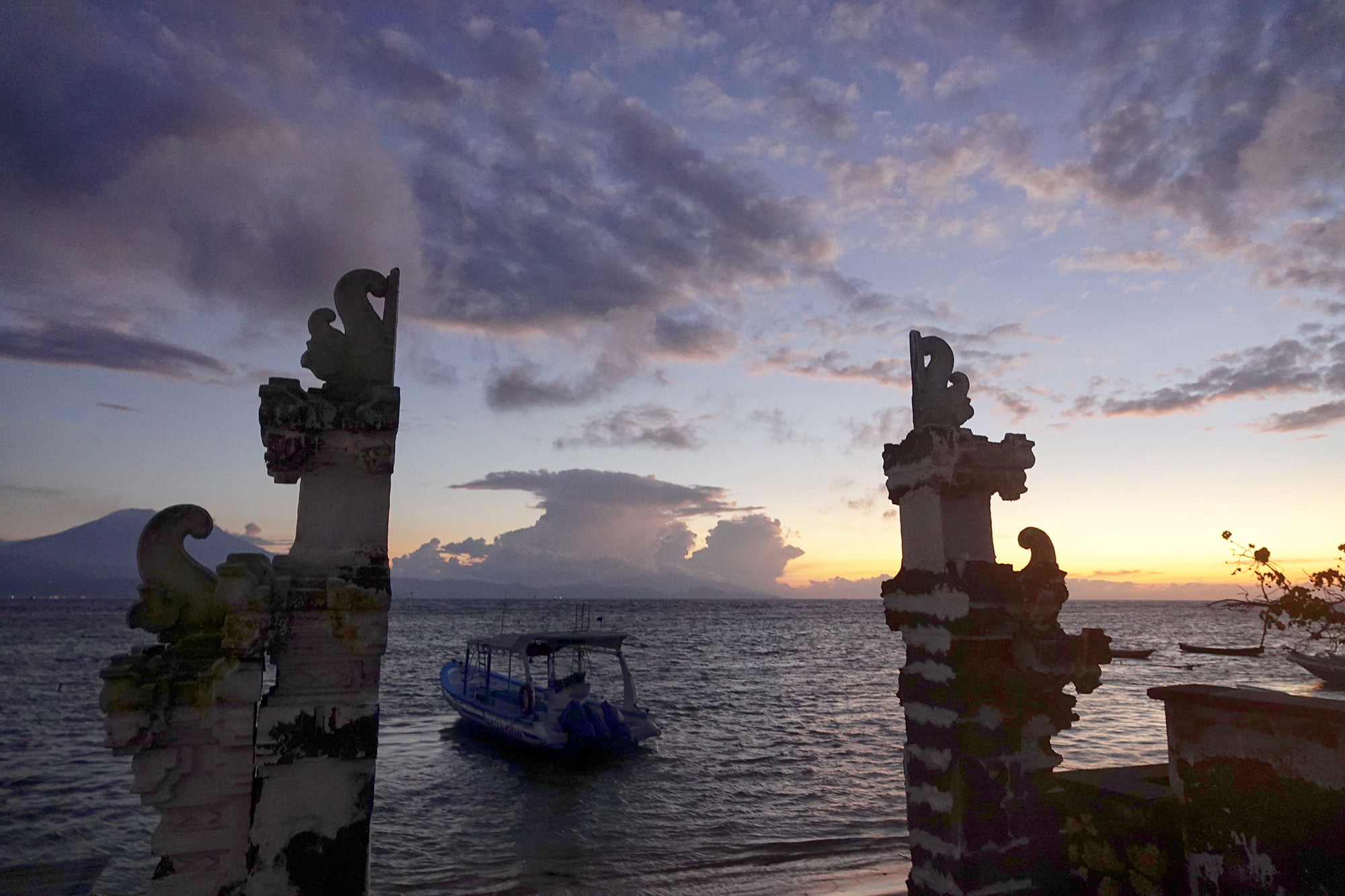 Views of the same amazing sunrise at different times as well as different locations on the North East side of Nusa Lembongan. Each showing nature, culture and island life differently, along with contrasting colours of the sky as the sun creeps up through the clouds.