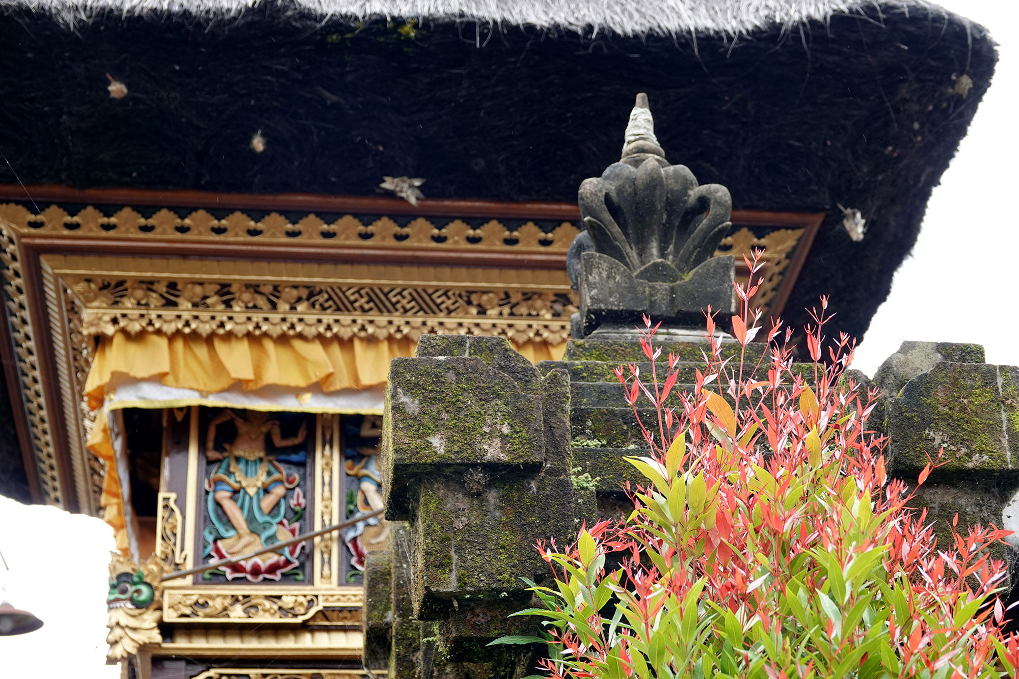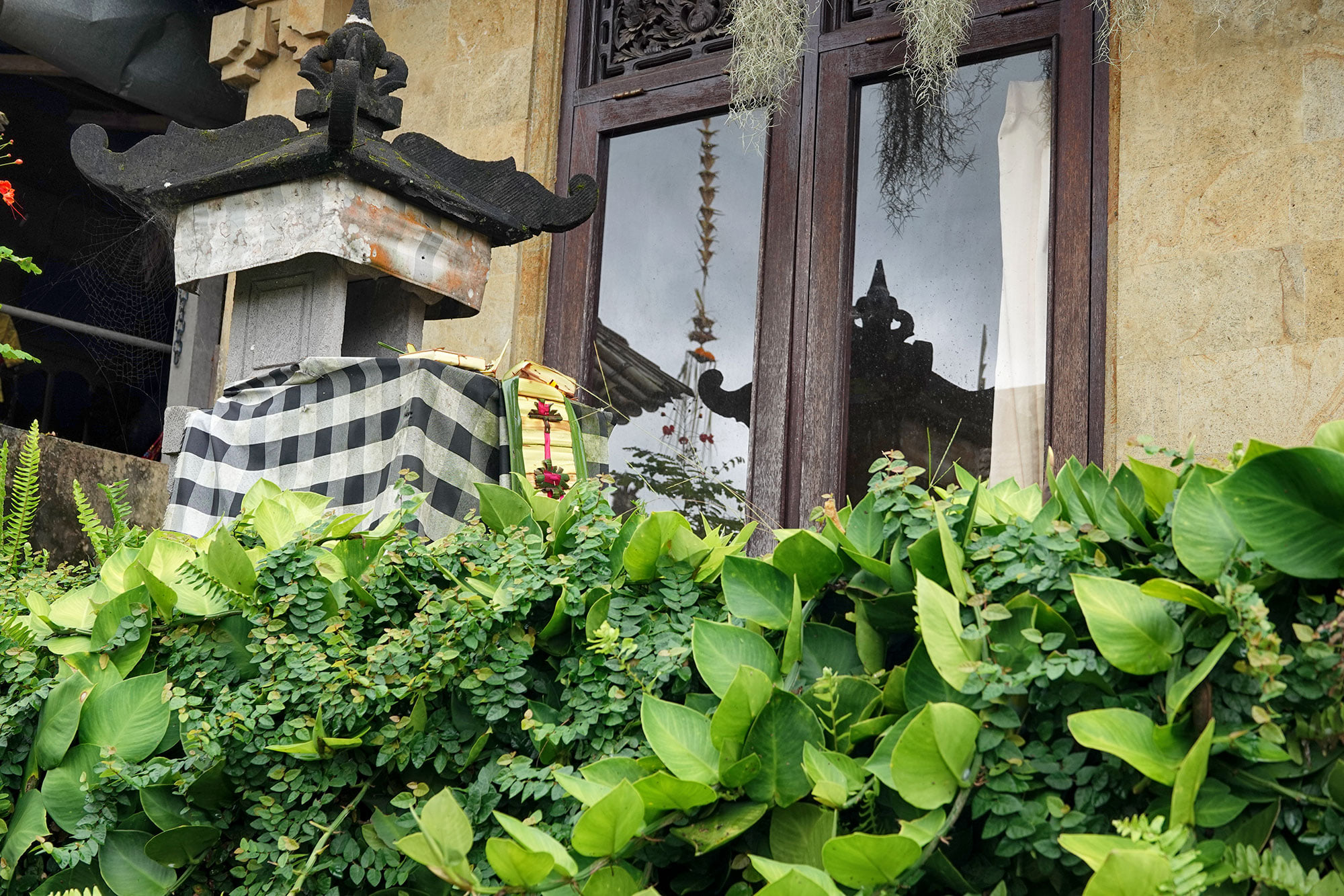 A temple outside the window of a Balinese home.