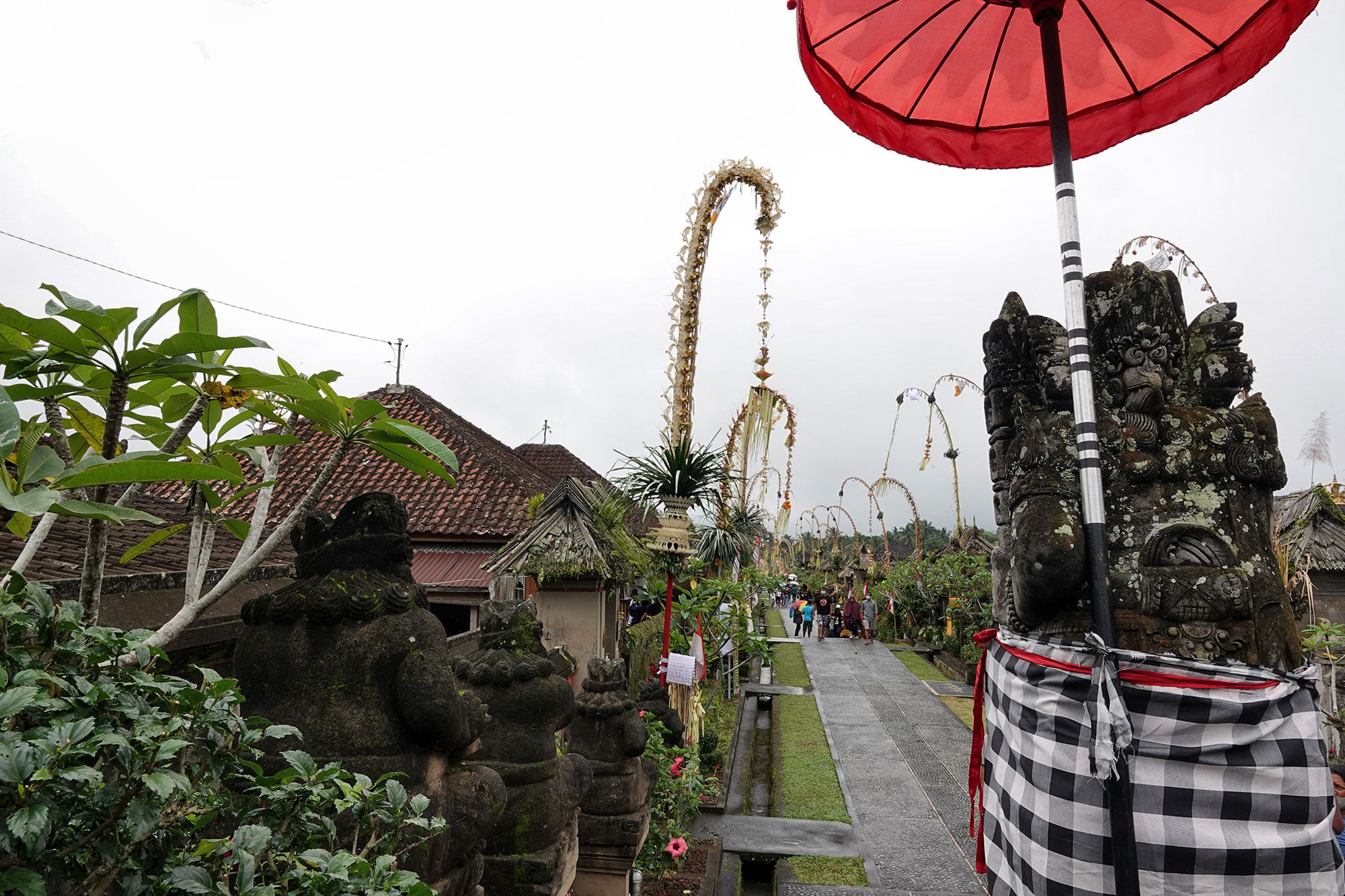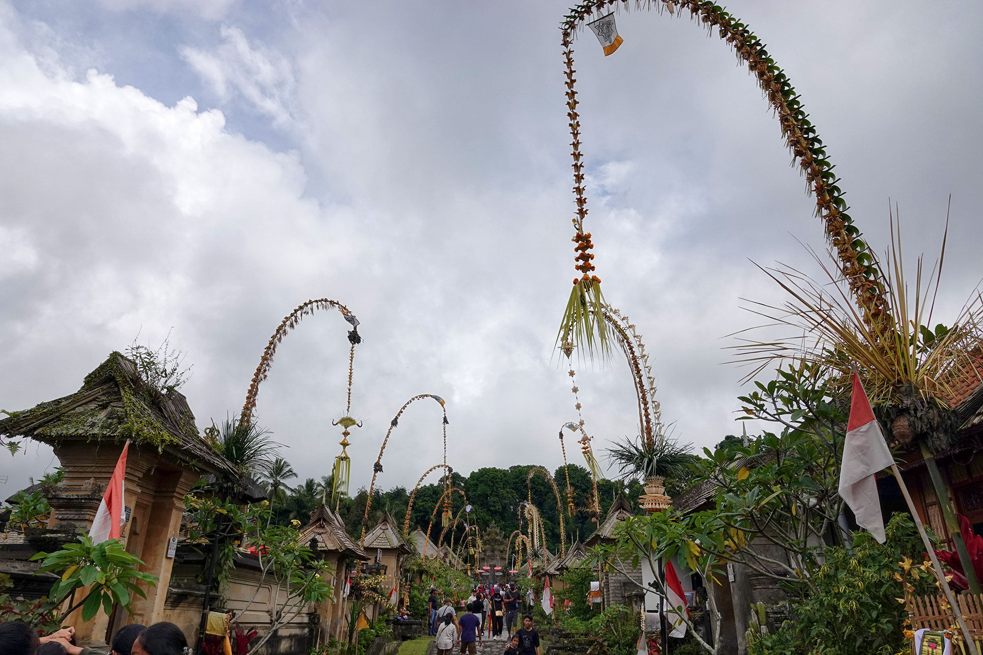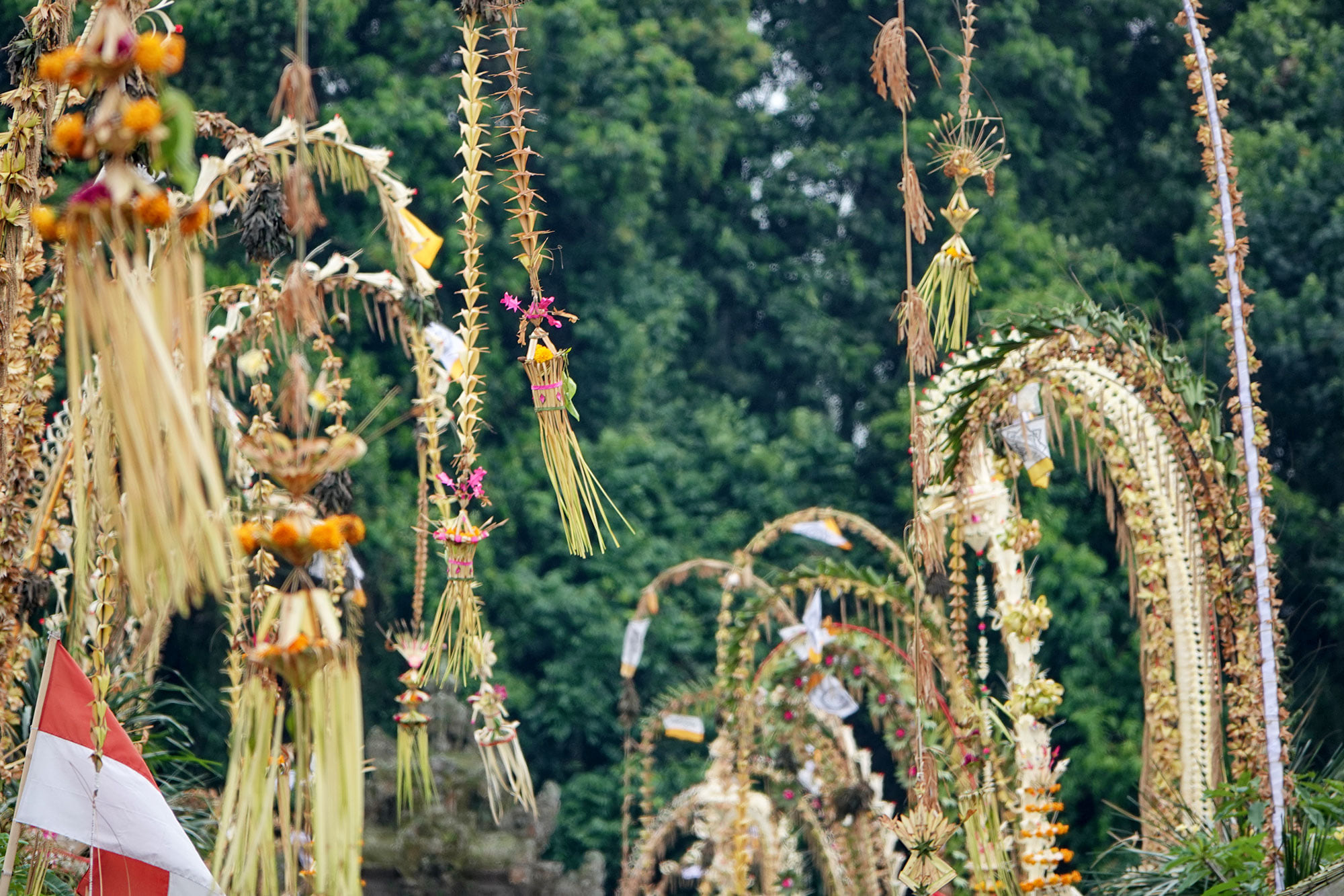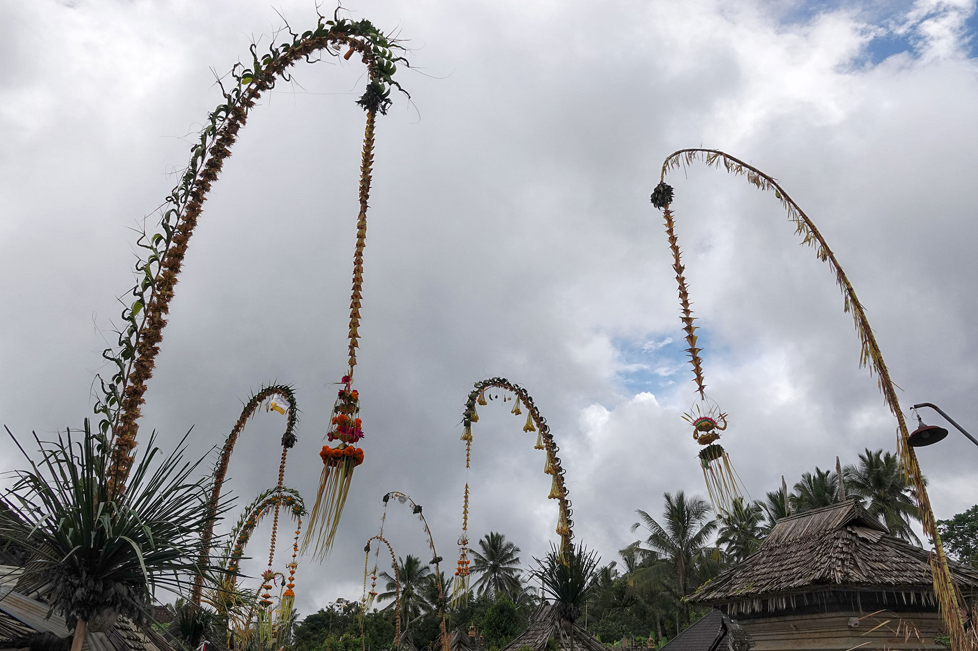 Bamboo poles bedazzled with coconut leaves line the streets, in preparation for Galungan day.