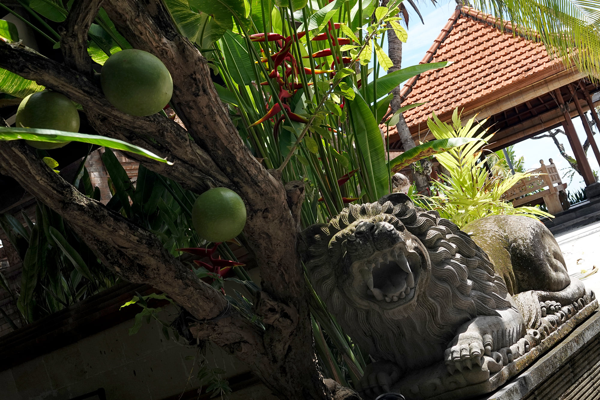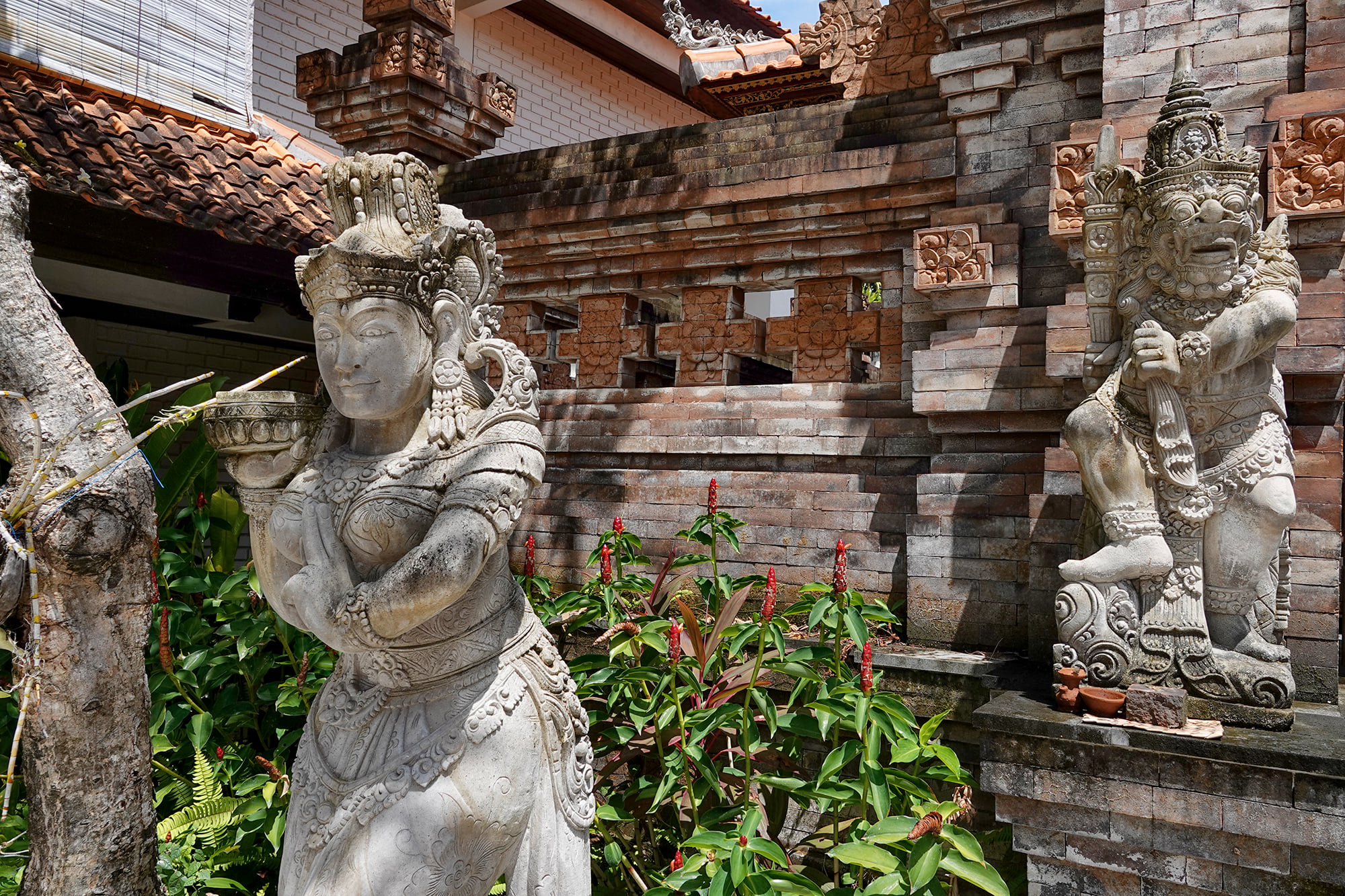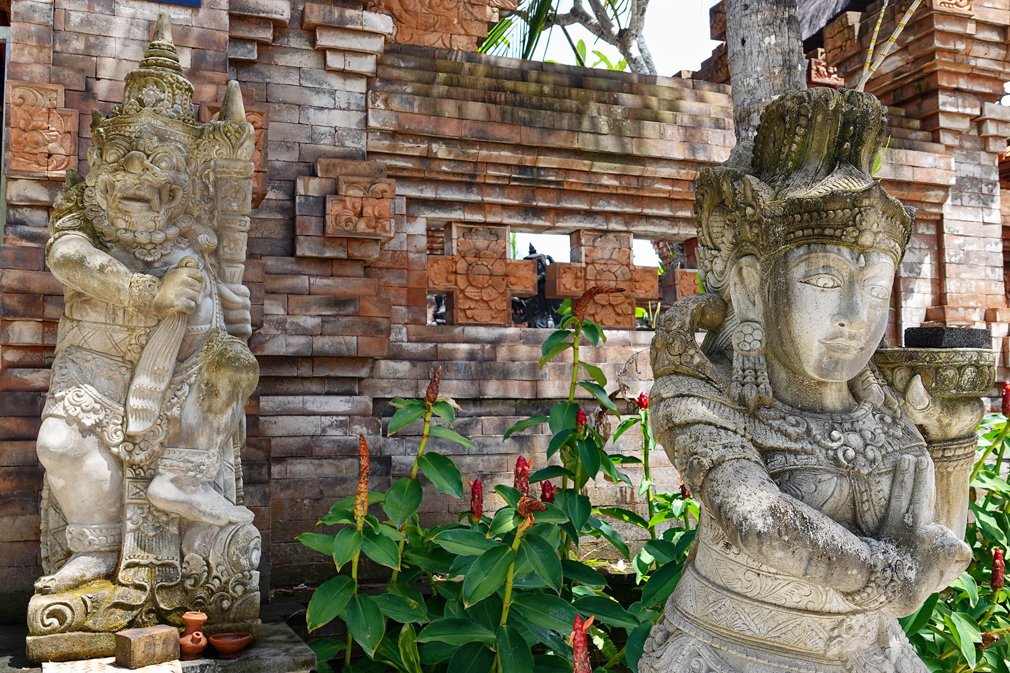 A sculpture at the entrance of a property located on an East Bali Beach.