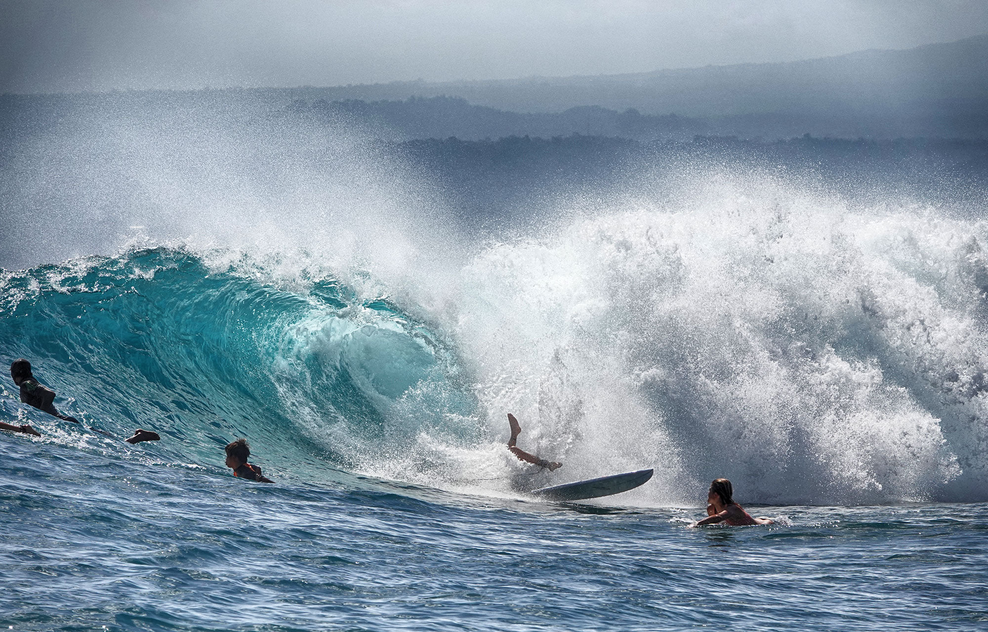 Different styles of surfing and falling can be seen each and every day at the amazing and beautiful surf spot called Lacerations, on the incredible tropical Indonesian island of Lembongan.