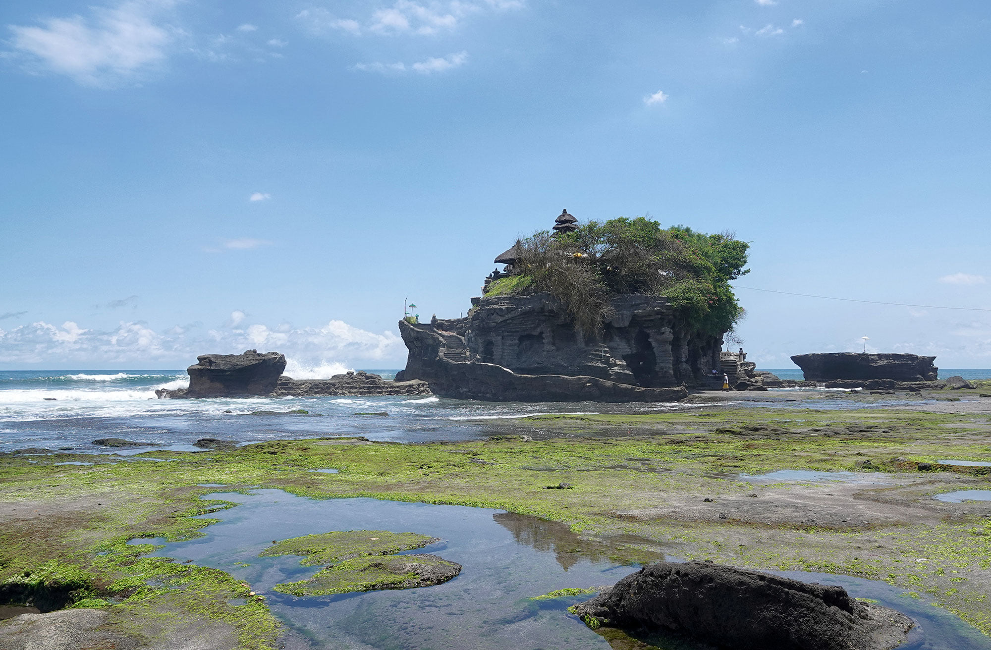 Tanah Lot, meaning earth and sea, is a temple located in the Tabanan Regency of West Bali, situated on top of a rock at the beach, overlooking the ocean and the magnificent coastline.