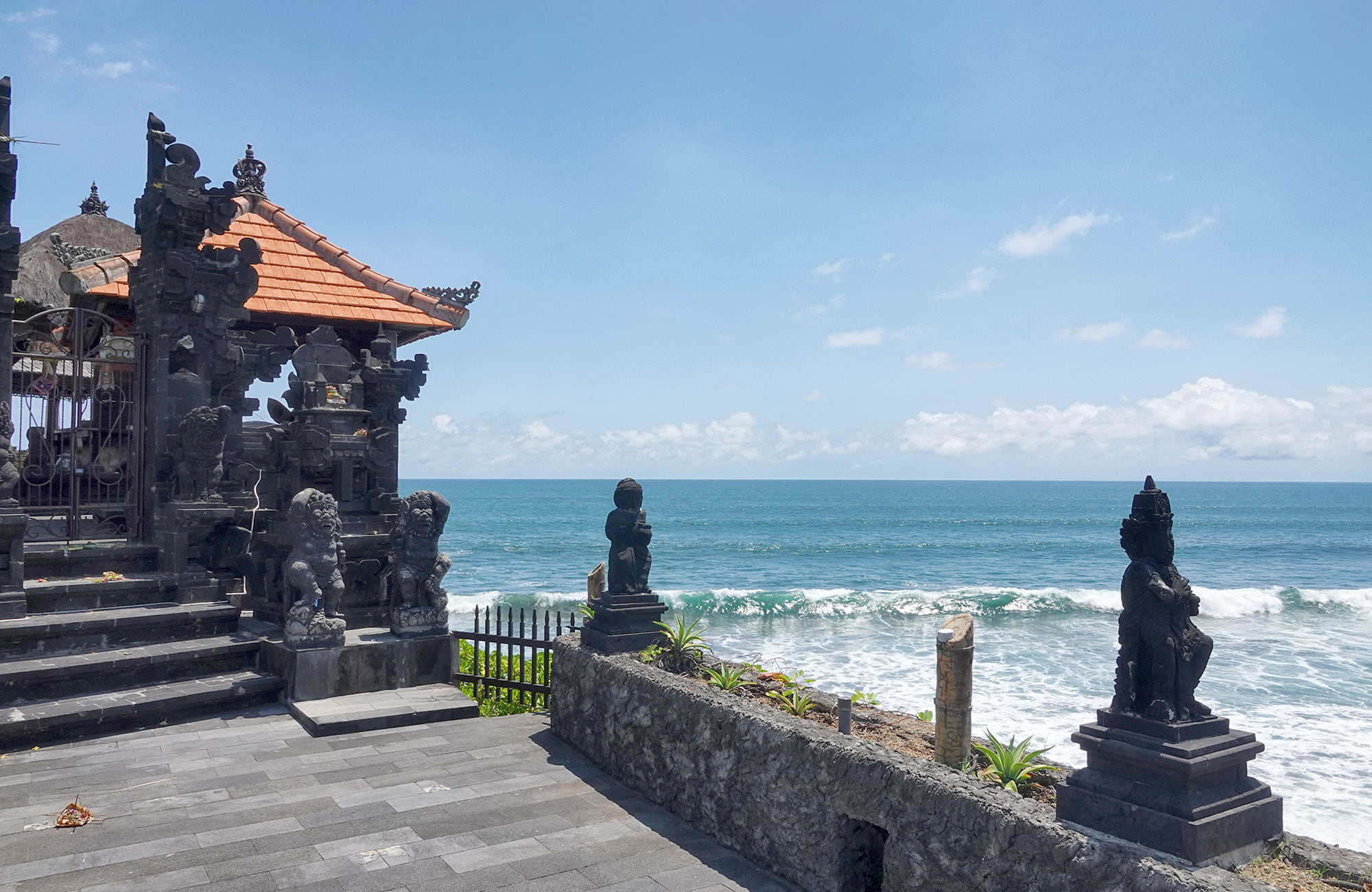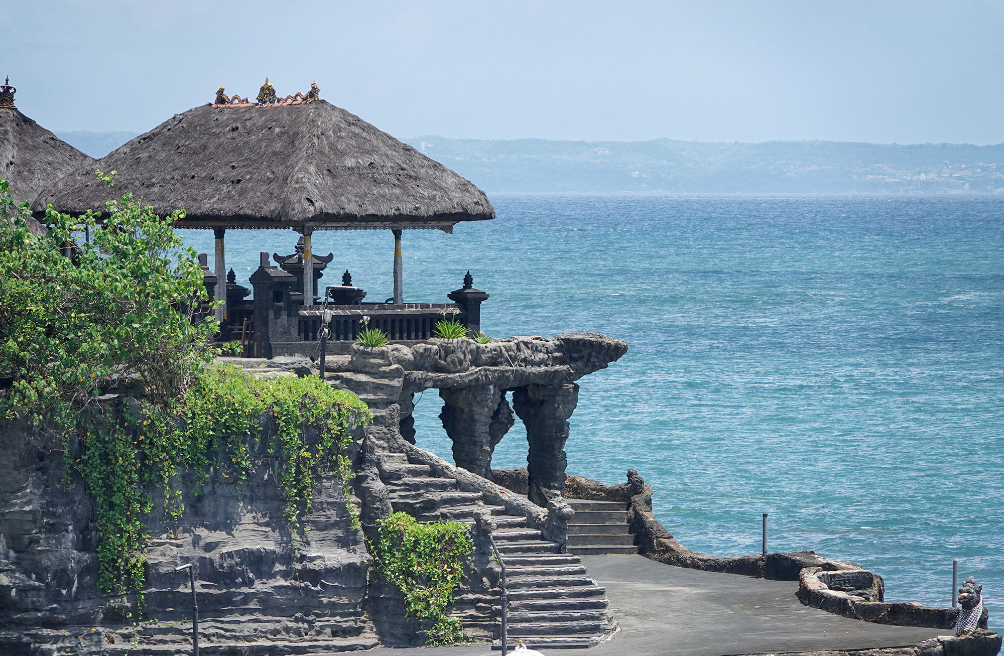 A place for resting and relaxing, overlooking the rock pools of Tanah Lot and the beautiful blue ocean.